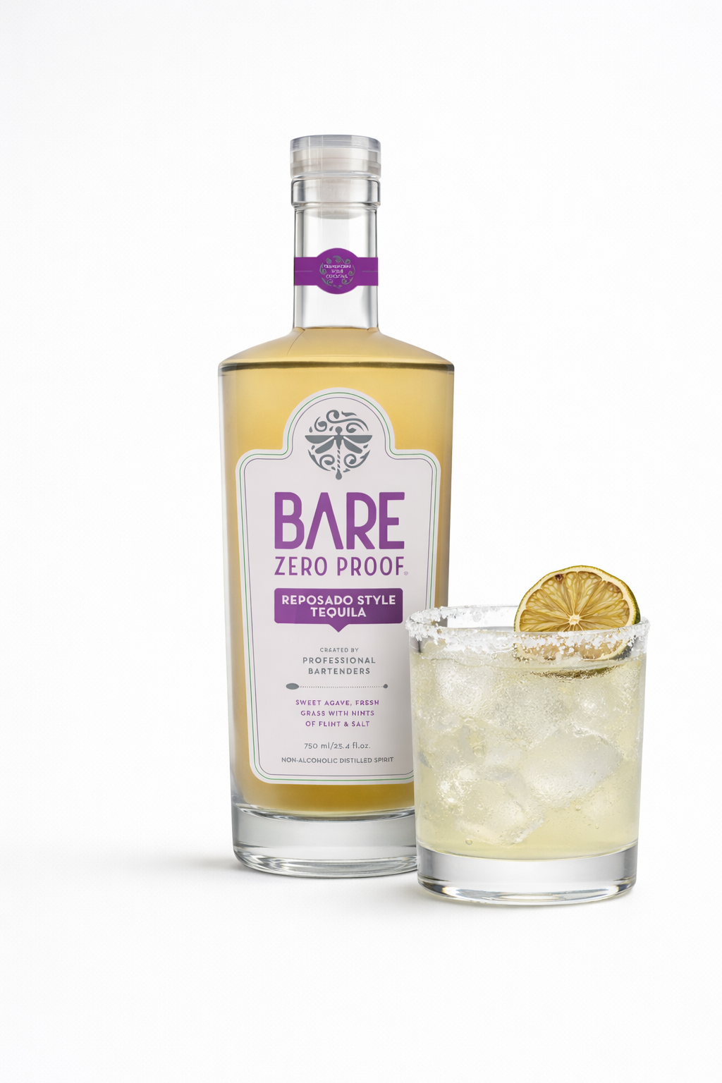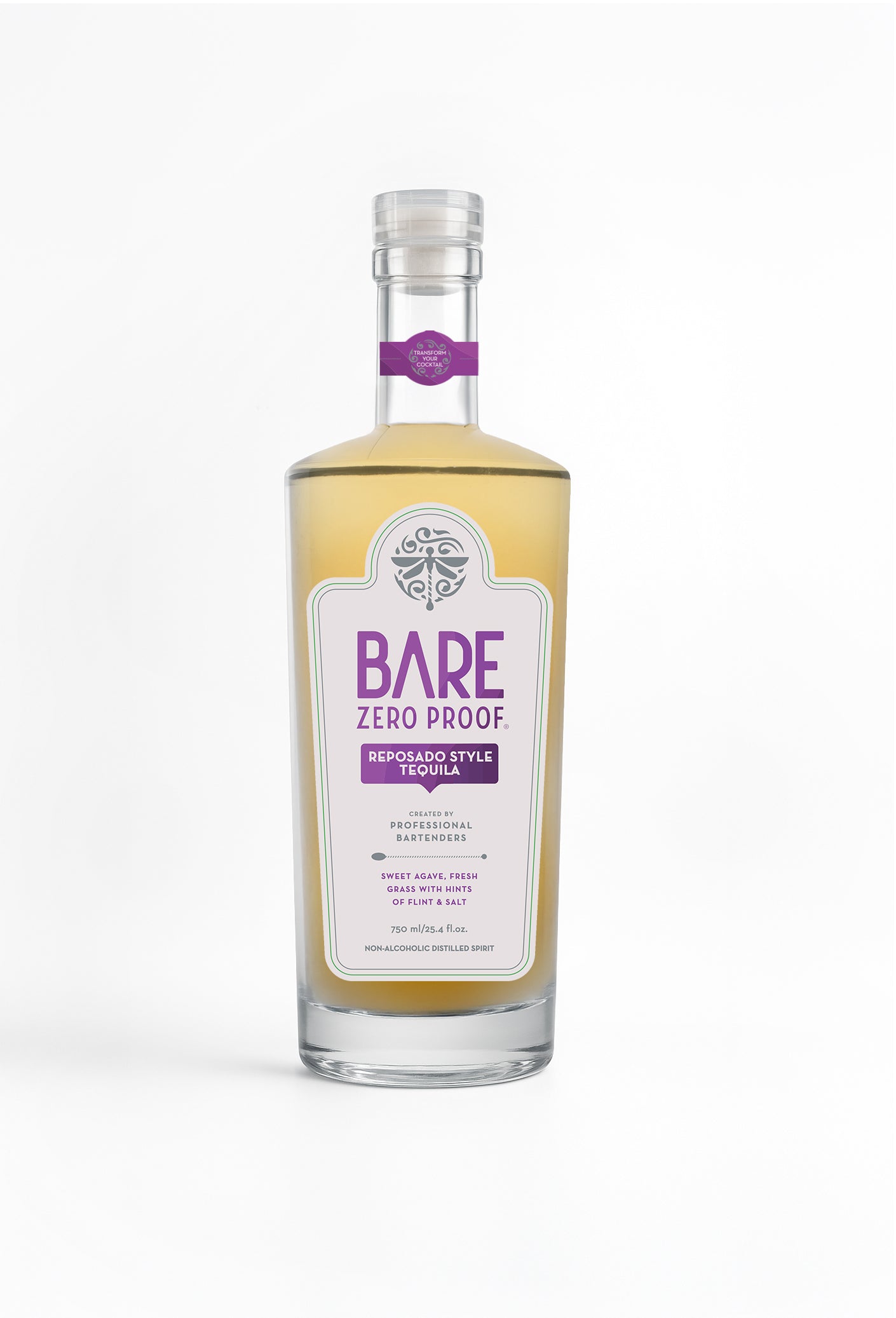BARE ZERO PROOF® REPOSADO STYLE TEQUILA is a zero-proof expression that is grassy with fresh green agave notes, a sweet honey background, & floral depth - finishes with a lime zest & tingling burn.